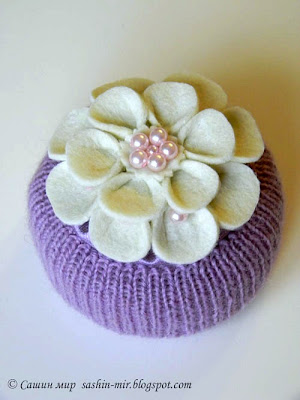 Из фетра вырезаем лепестки двух размеров. Края каждого лепестка склеиваем термопистолетом. Клеим в два ряда к основанию - кружок из фетра (размером меньше крышки примерно на 1,5см в диаметре).