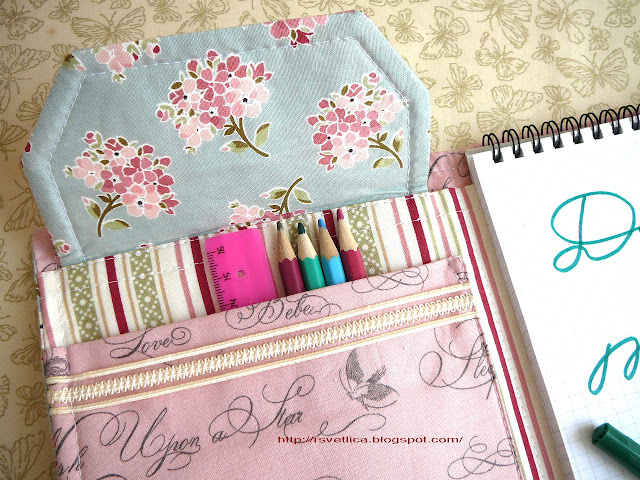 Старшей дочери понравилась коричневая обложка. Она заказала себе такую же обложку для дневника и пенал, что ж.... пойду шить!