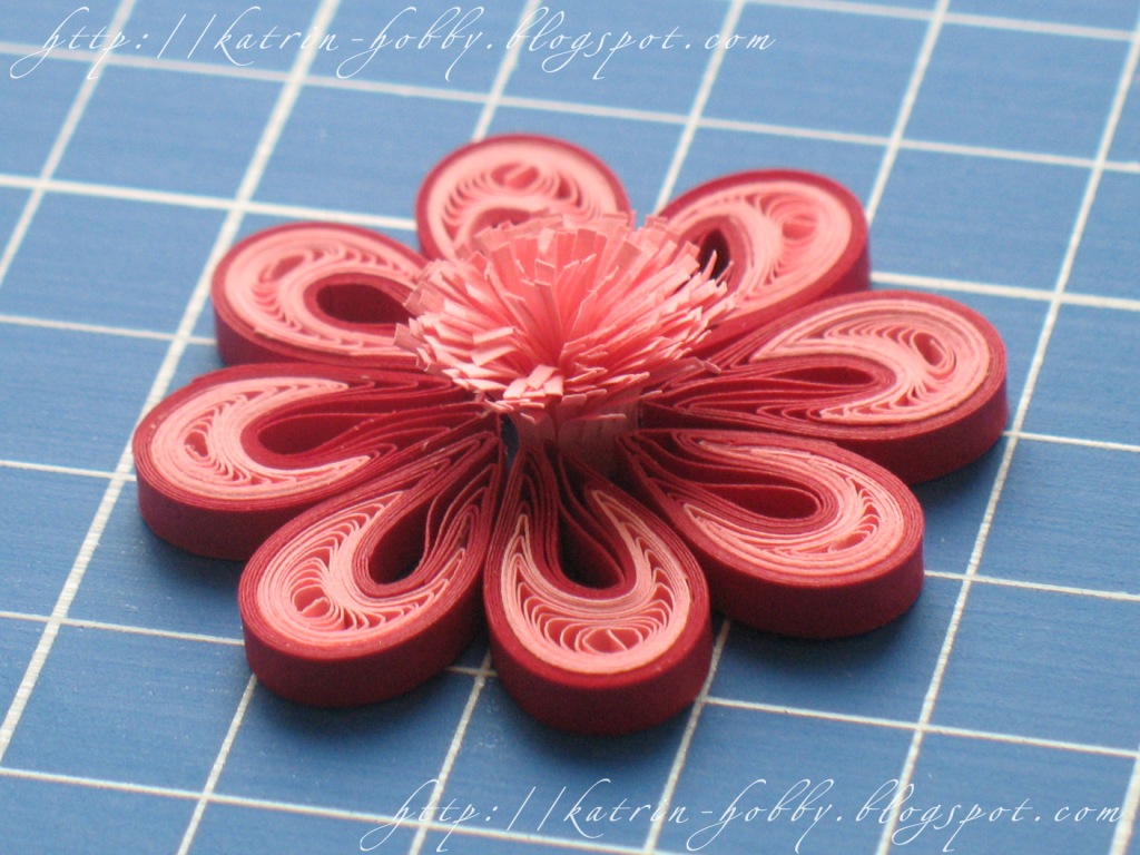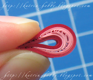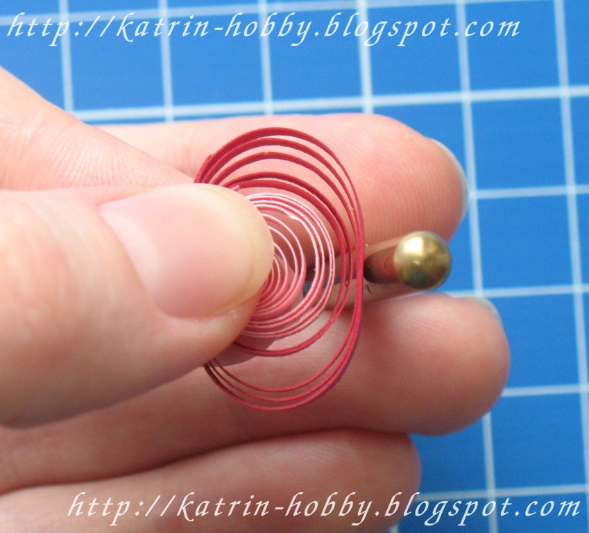 Делаем лепесток: огибаем наш рол вокруг инструмента для закручивания полосок (это может быть любой предмет с подходящим диаметром окружности). Сделала побольше фоток, чтобы процесс формирования лепестка был более понятен. Итак, начнем...