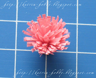 Скручиваем цветок, фиксируем с помощью клея и расправляем бахрому.